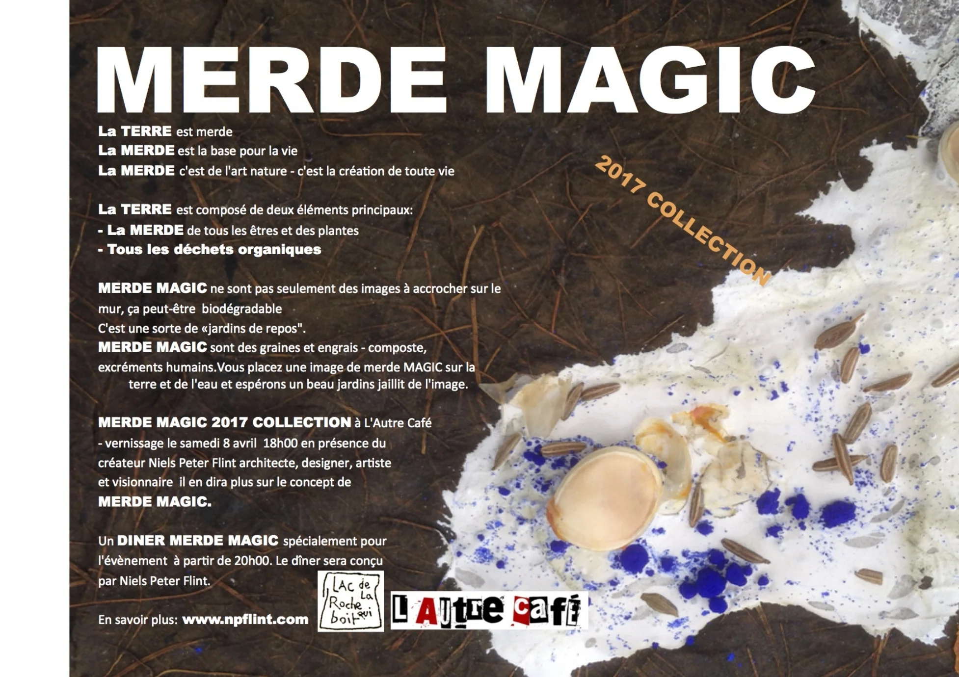 Come and see the MERDE MAGIC 2017 COLLECTION at L´Autre Café – opening Saturday April 8th 2017 at 18.00 where the creator of MERDE MAGIC architect, designer, artist and visionary Niels Peter Flint will tell more about the MERDE MAGIC CONCEPT.